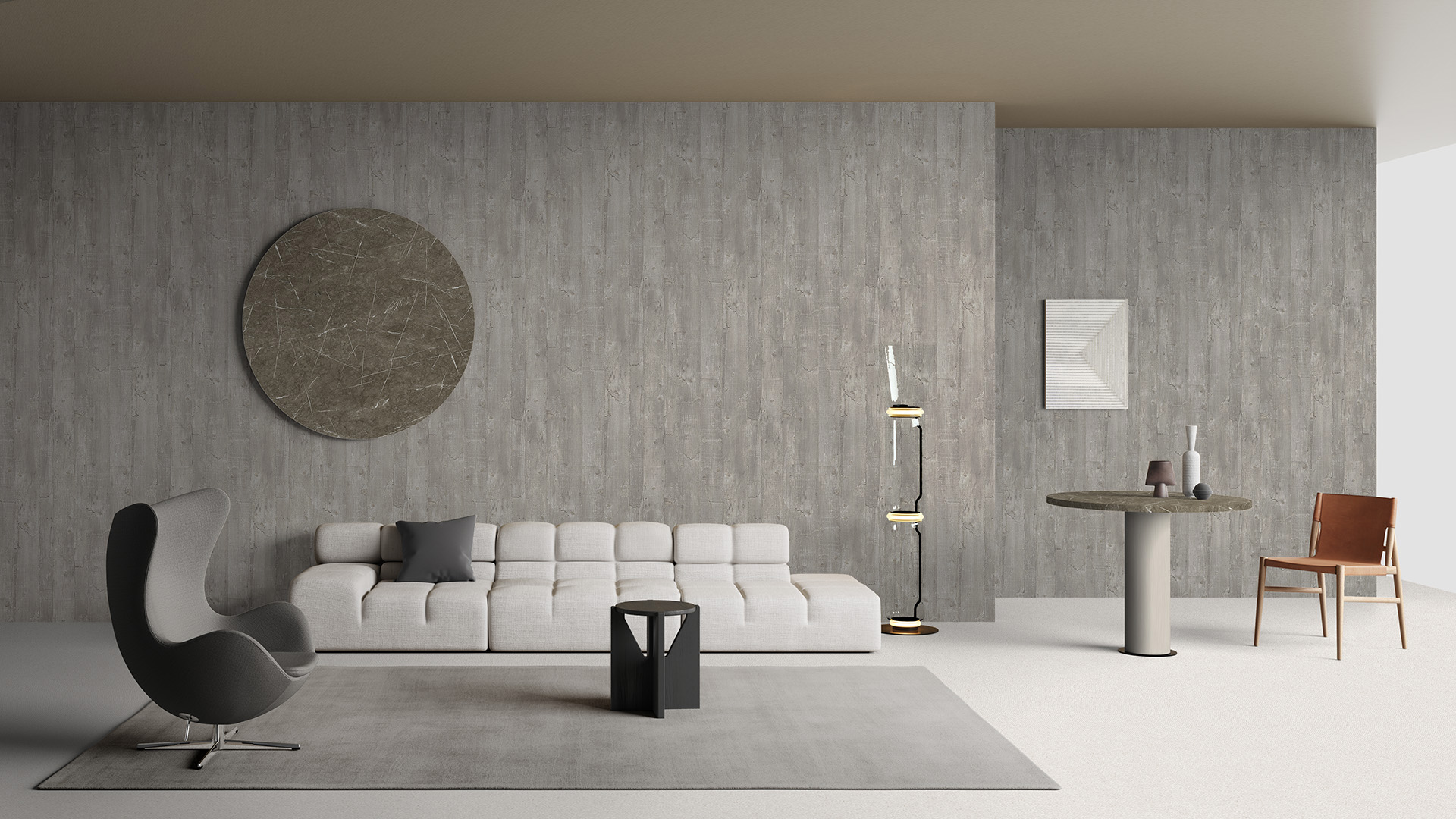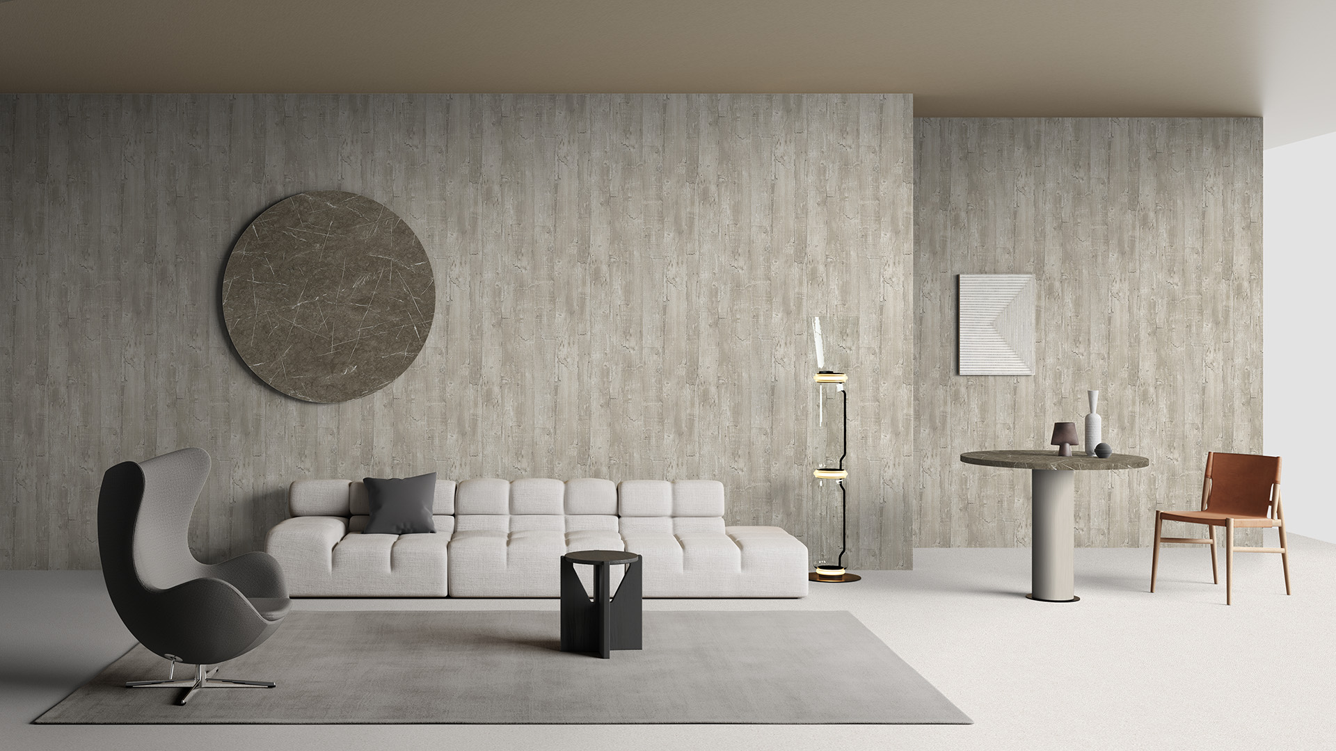 I segni del tempo e dell’usura vengono elevati a pregio estetico. Chaos è un disegno di carattere e di grande impatto. Un mix tra un decoro legno ed una superficie cementizia