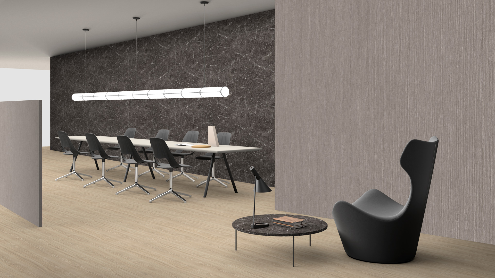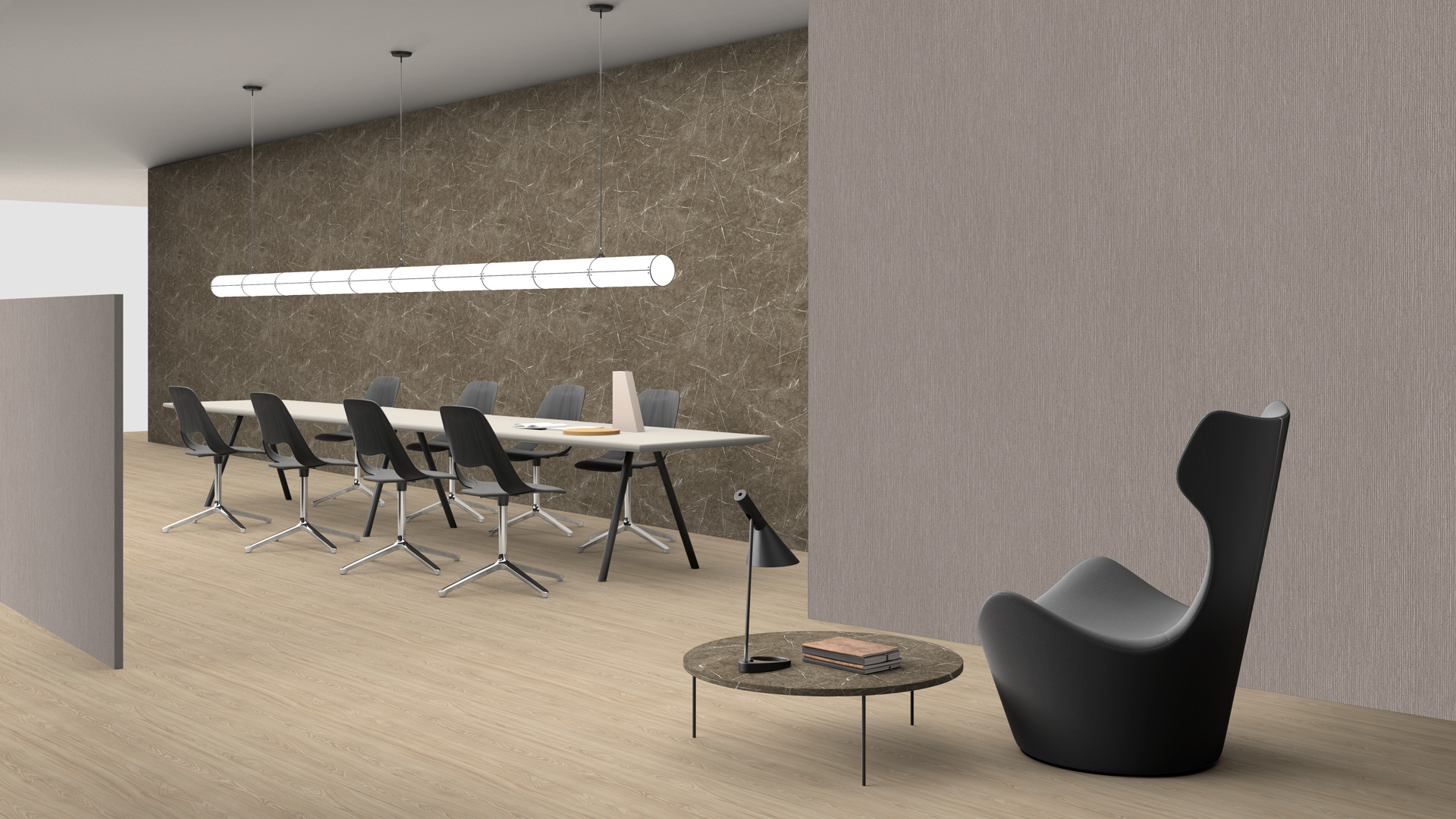 Un marmo audace, che dona pregio ed eleganza all’ambiente, in cui la fitta texture di venature a contrasto definisce il ritmo e il movimento della superficie. La mancanza di direzionalità lo rende adatto ai più svariati utilizzi
