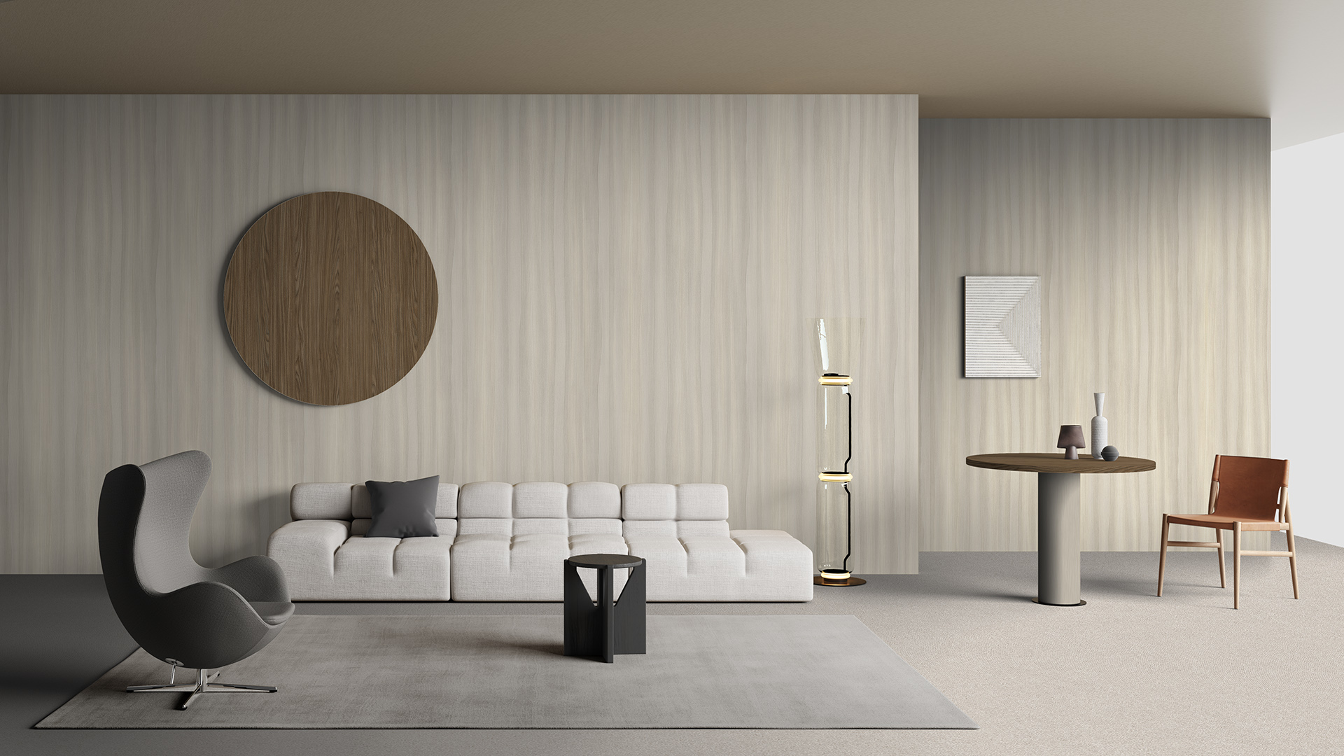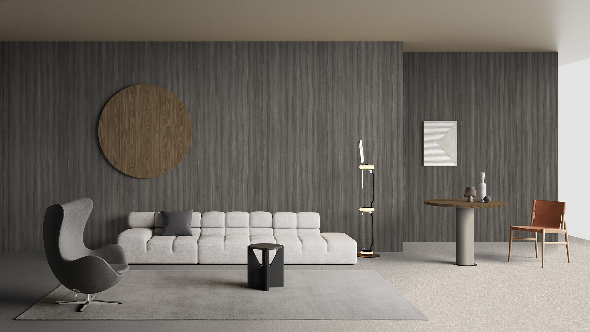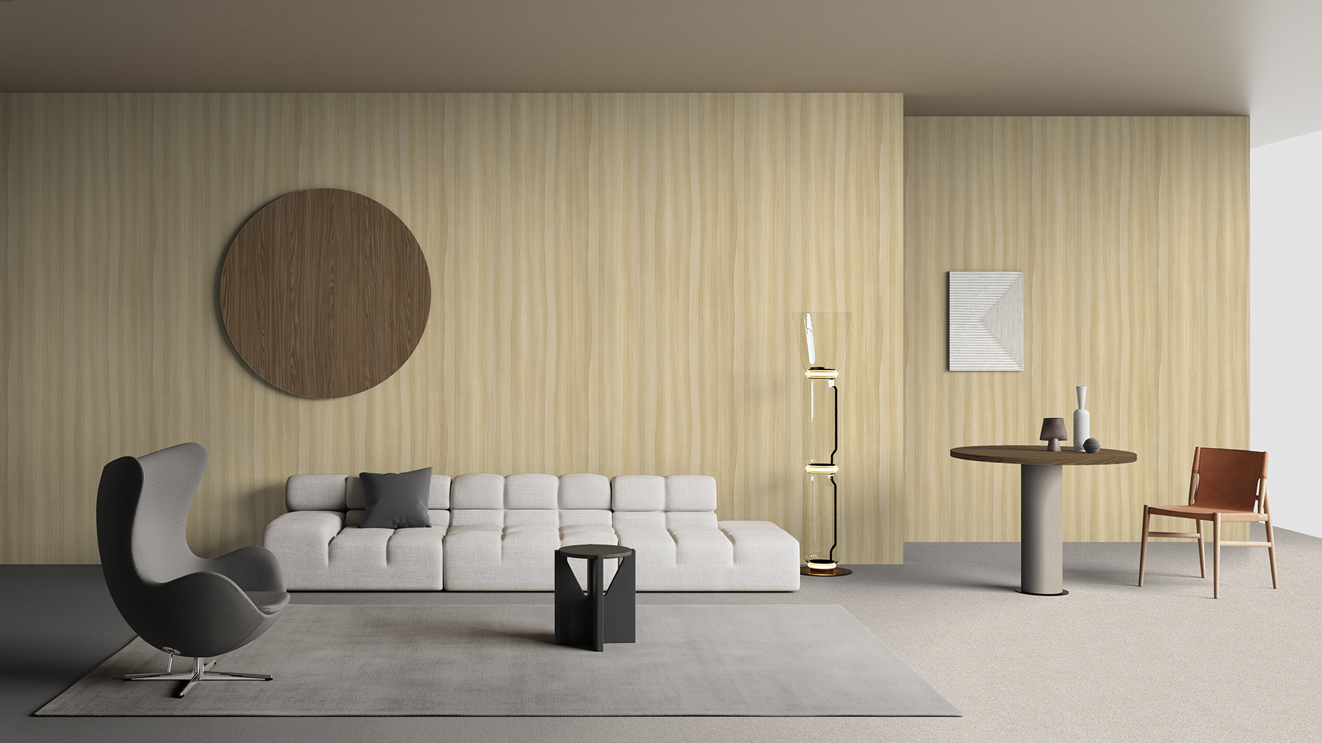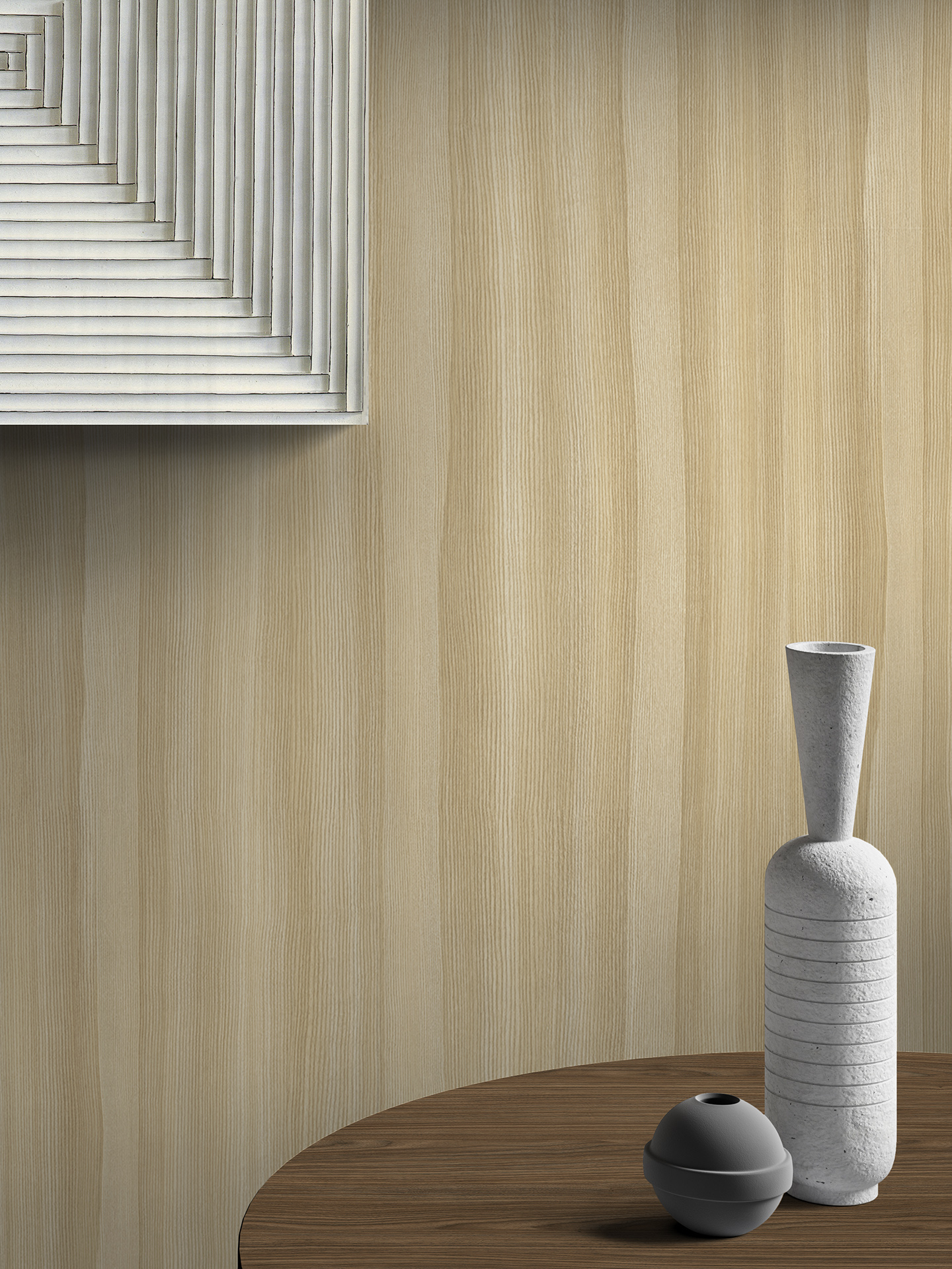 Un frassino dall’aspetto elegante ma dinamico allo stesso tempo, grazie al movimento sinuoso e rilassante, si adatta a superfici di grandi dimensioni, senza risultare invadente, ma caratterizzando l’ambiente.