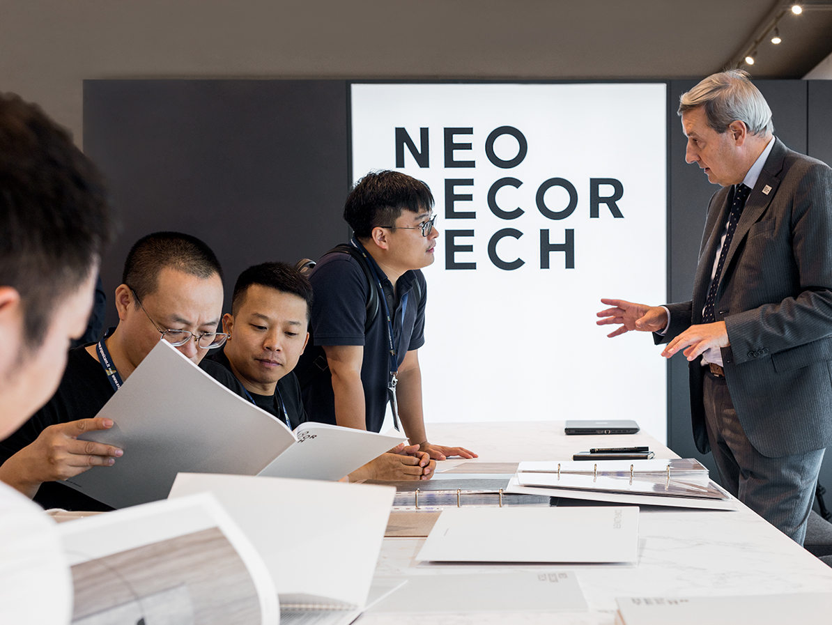 Per Sicam 2019 Neodecortech riconferma un concept espositivo efficace: uno stand dall’espressione architettonica rigorosa racchiude un racconto dell’azienda sfaccettato e stimolante.