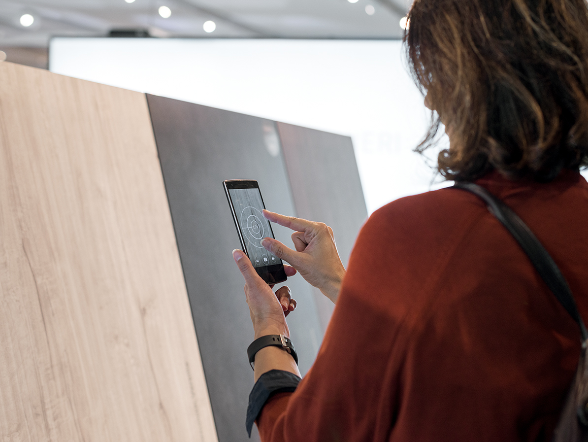 I pannelli espositivi dedicati al prodotto sono animati da racconti video del mondo Neodecortech in cui approfondimenti più informativi si intervallano a suggestioni di stile. Ancora volta Neodecortech informa il suo pubblico, incuriosendolo.
